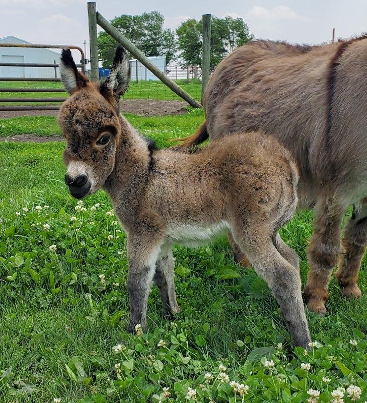 Here he is! Woooeee. Cute, cute, cute. If you are looking for an extreme woolly Donkeys for sale near me to keep as a pet here is your guy. Sweet and just being a momma’s boy right now. Gosh he loves her! It is adorable. He will mature to approx 32″.